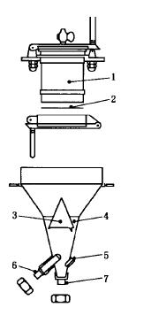 7.5沿著濾水室的內側或中心(xīn)快(kuài)速穩定地將試(shì)樣倒進濾水室內,倒完後試樣在濾水室中應幾乎靜止。立即關閉頂蓋和空氣閥(fá)門(mén),並打開底蓋(gài),5s後打開空氣(qì)閥門(mén)使(shǐ)水自動流出。
