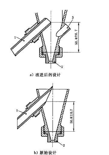 排(pái)空側管是一個內徑為12.7 mm的空心管(guǎn),此管插入漏鬥的內壁裏,管子的溢流口與漏鬥底之間的距離是50.8 mm±0.7 mm。