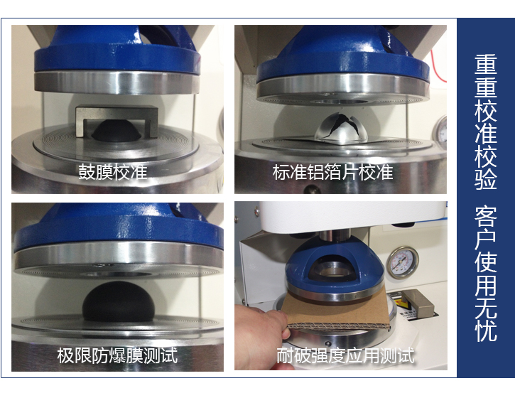 将试样放置于弹(dàn)性胶膜(mó)上,紧紧夹住试(shì)样周边(biān),使之与胶膜一起自由凸起。当液压液体稳定速率泵入,使胶膜凸起直至(zhì)试(shì)样破裂时,所施加的(de)最大压力即为试样耐破度。