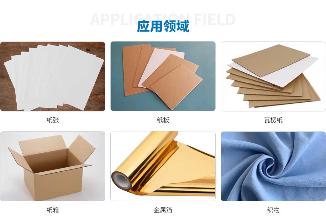应用领域: 纸、纸板、瓦楞纸、纸箱、金属箔(bó)、织物(wù)