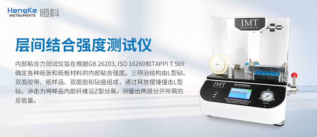 产品简介: 内部粘(zhān)合力测试仪旨在根据GB 26203, ISO 16260和TAPPI T 569确定各种纸(zhǐ)张和纸板材料的内部粘合强度。三明治结构由L型砧、双面胶(jiāo)带(dài)、纸样品、双面胶和砧座组成,通过释放摆(bǎi)锤撞击L型砧,冲(chōng)击力将样品内部(bù)纤维沿Z型分离,测量出两层分开所需的总能量。
