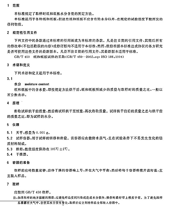 GB/T462-2003紙張檢測儀器(qì)/紙和紙板水分的測定(免(miǎn)費下載)