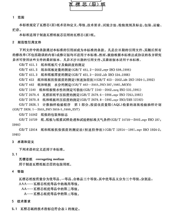 本標準代(dài)替GB/T13023-1991《瓦楞原紙》