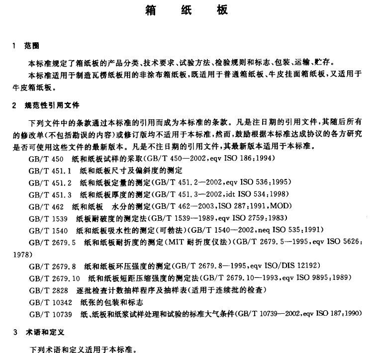本標準與日本(běn)工業標準(zhǔn)JIS P3902:2000《箱紙板》的一致性(xìng)程度為非(fēi)等效(xiào)