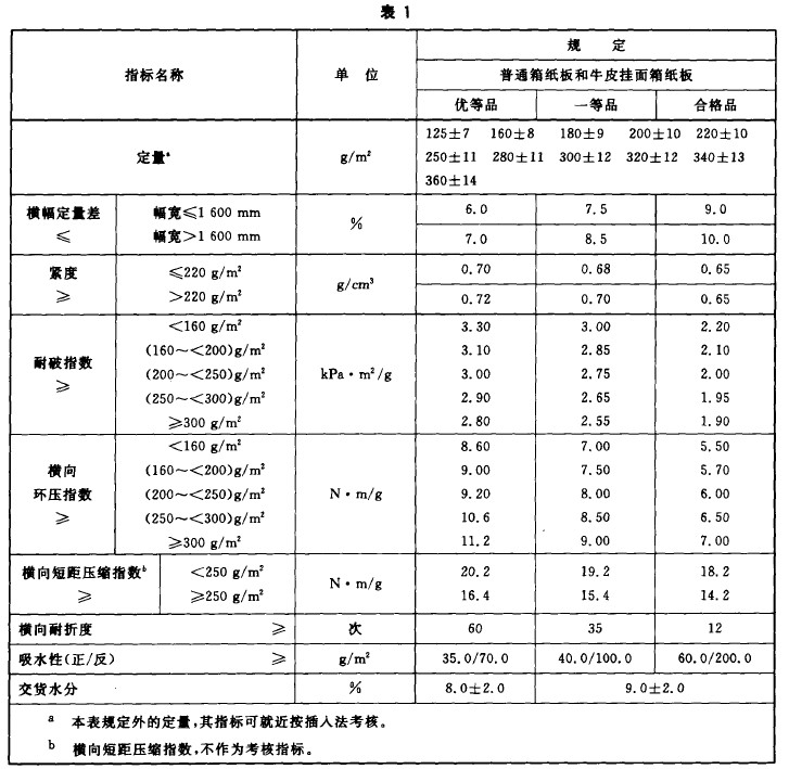 ——普通箱紙板和牛皮掛麵箱紙板的產(chǎn)品質量分為優等品、一等品為國際一般水平(píng)、國(guó)內先進水平,合格品為國內(nèi)合格水平;