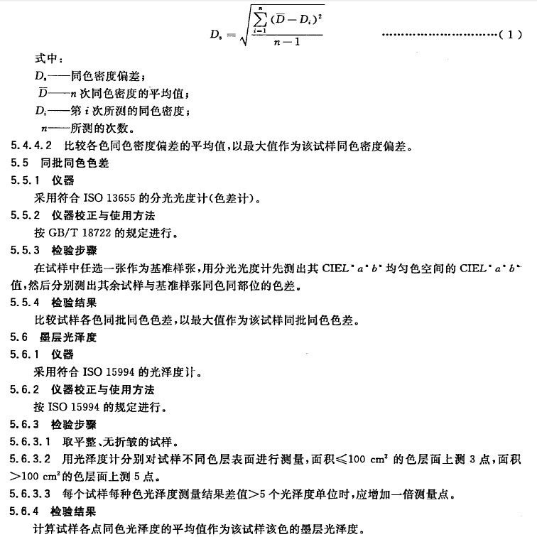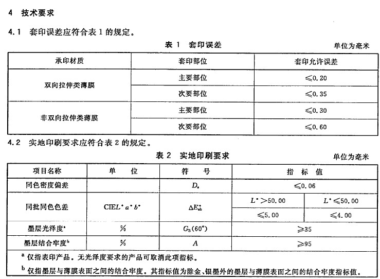 —標準中(zhōng)的“外觀”、“套印誤差”及“實地印刷要求”等作了適當的(de)修改;