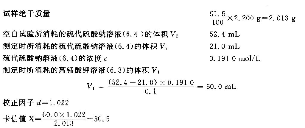 V1— 測定時所消耗的高錳酸鉀溶液(6.3)的體積,單位為毫升(mL) ;