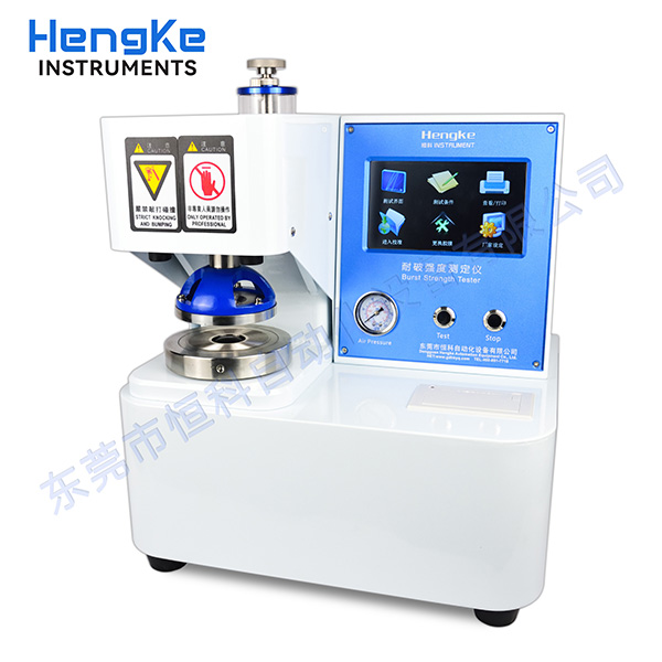 将试样放(fàng)置(zhì)于弹性胶膜上,紧紧夹住试样周边,使之与胶膜一起自由凸起。当液(yè)压液体稳定速率泵入,使胶膜凸起直至试(shì)样破裂时,所施加的最大压力即为试样耐破度。